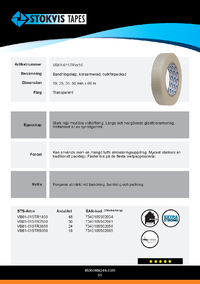 Sterk tape med god vedheft. Langsgående og tverrgående glassfiberarmering. Limet er syntetisk gummi.